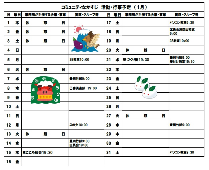 | <利用受付> | 中筋地区コミュニティセンター(コミュニティなかすじ) 午前9時00分から午後5時00分まで |