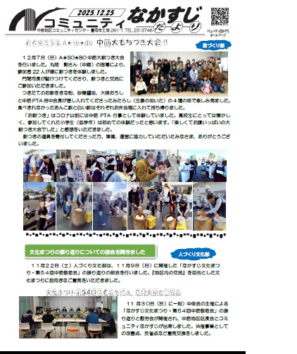 コミュニティなかすじ 加陽水辺公園部よりお知らせします。