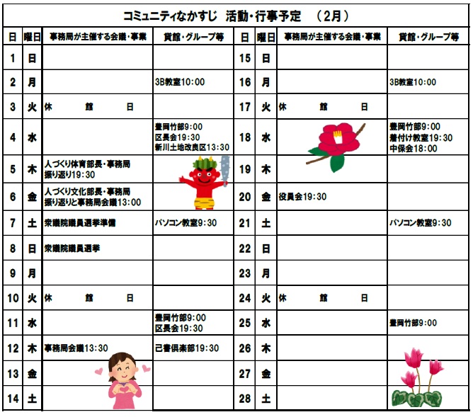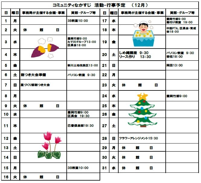 | <利用受付> | 中筋地区コミュニティセンター(コミュニティなかすじ) 午前9時00分から午後5時00分まで |